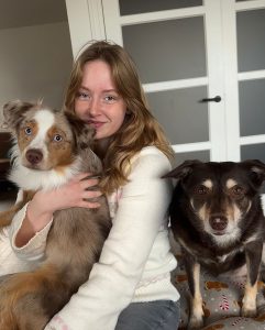 Ik hou er van om iets te kunnen betekenen voor anderen, zowel voor dier als mens! Hierdoor was paraveterinair ook de meest voorhand-liggende keuze voor mij. Als ik mijn diploma heb wil ik graag verder studeren, je kan nooit genoeg leren! Specifiek de natuurlijke geneeskunde trekt hierbij mijn interesse. Verder ben ik eigenaar van axolotls. Ik kweek ook zelf axolotls, heel leuk om te doen! We hebben thuis ook 2 honden: een Mini American Shepherd en een Kelpie, u ziet ze op de foto. Daarbij heb ik ook nog kippen! heel gevarieerd maar ik vind ook allerlei soorten dieren leuk.